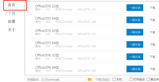 首先通过客户端安装Office,安装成功后点击首页按钮