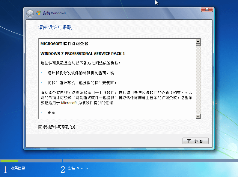 3. 勾选“我接受许可条款”, 点击“下一步”